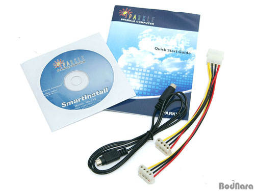 Sparkle GeForce 7600 GS Ultra2 256MB AGPÀÇ ±¸¼º¹°·Î´Â ±×·¡ÇÈ Ä«µå ¿Ü¿¡ »ç¿ëÀÚ ¸Å´º¾ó, µå¶óÀ̹ö CD, S-Video Ãâ·Â ÄÉÀ̺í, ¿ÜºÎ Àü¿ø ÀÔ·Â ÄÉÀ̺íÀÌ µé¾îÀÖ´Ù.