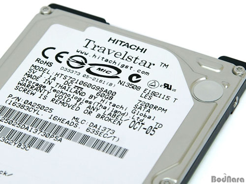 ÇÏµå µð½ºÅ©µµ 2.5ÀÎÄ¡ SATA 60GB 5400 RPM Á¦Ç°ÀÌ µé¾î°¡ ÀÖ¾úÀ¸³ª HitachiÀÇ 7200 RPM Áö¿ø ¸ðµ¨ Travelstar 60GB SATA ¸ðµ¨À» »ç¿ëÇÏ¿´´Ù.