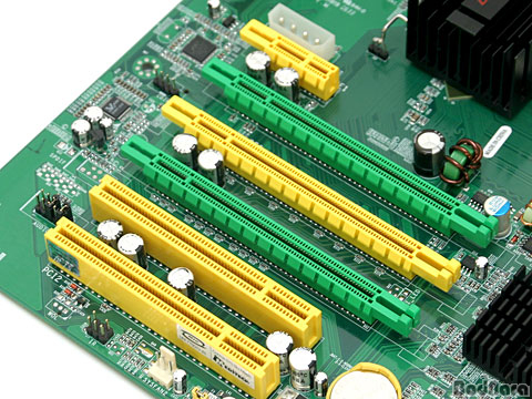 ¹Ù·Î ¾Æ·¡¿¡ PCI-Express x16 ½½·Ô 3°³°¡ À§Ä¡ÇÏ°í ¸¶Áö¸·¿¡ ³ë¶õ»öÀÇ PCI ½½·Ô 2°³°¡ À§Ä¡ÇÑ´Ù. PCI-Express