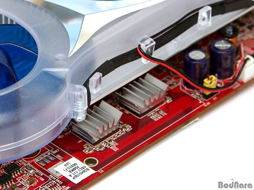 µ¢Ä¡ Å« IceQ Äð·¯°¡ ´ã´çÇϰí ÀÖ´Â °ÍÀº ¿ÀÁ÷ GPU ÇϳªÀ̹ǷΠ¸Þ¸ð¸®¿¡´Â º°µµÀÇ È÷Æ® ½ÌÅ©¸¦ ºÙ¿©³õ¾Ò´Ù. ¸Þ¸ð¸® Á¤º¸¸¦ È®ÀÎÇÏ°í ½Í¾úÀ¸³ª È÷Æ®½ÌÅ©¸¦ ¼¸Ö Á¢ÂøÁ¦·Î ºÙ¿©³õ¾Ò´ÂÁö ½±°Ô ¶³¾îÁöÁö ¾Ê¾Æ Á¦Ç° ÆÄ¼ÕÀÌ ¿ì·ÁµÇ¾î È®ÀÎÇÒ ¼ö ¾ø¾ú´Ù. ´Ù¸¥ Radeon X1650 Pro¿Í ¸¶Âù°¡Áö·Î 1.4ns ¸Þ¸ð¸®°¡ »ç¿ëµÇ¾úÀ¸¸®¶ó ÁüÀÛ¸¸ ÇÒ »ÓÀÌ´Ù.