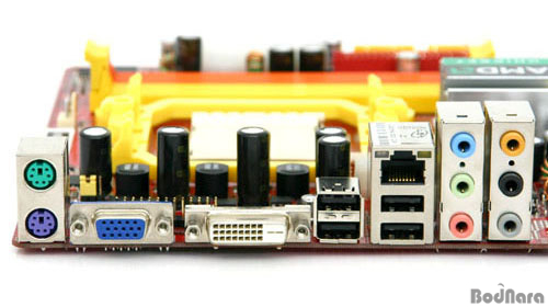 ¹éÆÐ³Î ±¸¼ºÀº ÁÂÃøºÎÅÍ Å°º¸µå/¸¶¿ì½º ¿¬°áÀ» À§ÇÑ PS/2 Æ÷Æ®¿Í ³»Àå ±×·¡ÇÈ Ãâ·Â ´ÜÀÚÀÎ D-SUB, DVI-I ´ÜÀÚ, USB 2.0 Æ÷Æ® 4°³, ±â°¡ºñÆ® ·£ Æ÷Æ®, ¾Æ³¯·Î±× »ç¿îµå ÀÔ/Ãâ·Â ´ÜÀÚ·Î ÀÌ·ç¾îÁ® ÀÖ´Ù. ³»Àå ±×·¡ÇÈ Ãâ·ÂºÎ°¡ µé¾î°¡¸é¼­ Á¦°ÅµÈ ½Ã¸®¾ó/ÆÐ·¯·¼ Æ÷Æ®´Â ¸ÞÀκ¸µå ³»ºÎ¿¡ È®Àå Çì´õ·Î ¸¸µé¾îÁ³Áö¸¸ À̸¦ »ç¿ëÇϱâ À§ÇÑ ºê¶óÄÏÀº ÇÔ²² Á¦°øµÇÁö ¾Ê´Â´Ù.