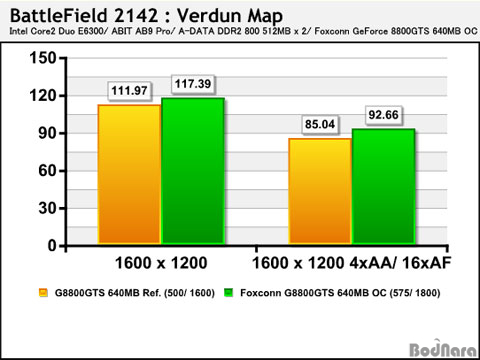 ±×·¸´Ù¸é, 8800GTX 768MB¿Í µ¿ÀÏÇÑ ÄÚ¾î¿Í ¸Þ¸ð¸® Ŭ·°À» °¡Áø Foxconn 8800GTS 640MB OC ¹öÀüÀÇ ¼º´ÉÀº ¾î´À Á¤µµÀϱî? ·¹ÆÛ·±½º Ŭ·°À» °¡Áø 8800GTS 640MB¸¦ ÀÌ¿ëÇÏ¿© ÇÔ²² ¼º´ÉÀ» ºñ±³ÇÏ¿© º¸¾Ò´Ù.