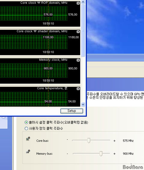 ¾Õ¼­ »ìÆìº» °Í°ú °°ÀÌ Àû¿ëµÇ°í ÀÖ´Â ÄÚ¾î Ŭ·°Àº 576MHz, ¸Þ¸ð¸® Ŭ·°Àº 1800(900)MHzÀ̸ç, ½¦ÀÌ´õ Ŭ·°Àº ·¹ÆÛ·±½ºÀÎ 1200 (Á¤È®È÷´Â 1188.00)MHz·Î RivaTuner 2.0¿¡ ³ªÅ¸³ª°í ÀÖ´Ù. Coolbits¸¦ ÅëÇÑ µå¶óÀ̹ö·Î È®ÀÎ µÈ ÄÚ¾î¿Í ¸Þ¸ð¸® Ŭ·°Àº ÄÚ¾î 575MHz, ¸Þ¸ð¸®´Â 1800(900)MHz¿´°í ½¦ÀÌ´õ Ŭ·°Àº ³ªÅ¸³ªÁö ¾Ê´Â´Ù. ÀÌ Å¬·°Àº »óÀ§ Á¦Ç°ÀÎ 8800GTX 768MB¿Í µ¿ÀÏÇÑ ÄÚ¾î¿Í ¸Þ¸ð¸® Ŭ·°ÀÌ´Ù. (´Ù¸¸, ½¦ÀÌ´õ Ŭ·°Àº 8800GTX 768MB´Â 1350MHzÀ̰í 8800GTS 640MB´Â 1200MHzÀÌ´Ù.)