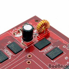 »ç¿ëµÇ´Â ¸Þ¸ð¸®´Â Àü¸é¿¡ DDR2 SDRAM BGA ŸÀÔ ¸Þ¸ð¸®¸¦ ¸ðµÎ 8°³ »ç¿ëÇϰí ÀÖÀ¸¸ç, Çϳª ´ç 32MB ±¸¼ºÀ¸·Î ÃÑ 256MB¸¦ ±¸¼ºÇÑ´Ù. 16bit 8ä³Î ±¸¼ºÀ¸·Î 128bit ¸Þ¸ð¸® ÀÎÅÍÆäÀ̽º°¡ Àû¿ëµÈ´Ù. HynixÀÇ 2.5ns ¼ÓµµÀÇ DDR2 SDRAMÀ¸·Î ÃÖ´ë 800(400)MHz±îÁö µ¿ÀÛÀÌ °¡´ÉÇÑ ¸Þ¸ð¸®·Î ÇØ´ç ½ºÆå¿¡ ¸Â´Â Ŭ·°ÀÌ ¼³Á¤µÇ¾î ÀÖ´Ù.