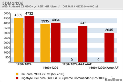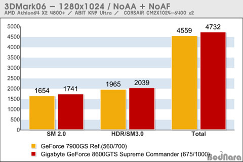GeForce 8½Ã¸®ÁîÀÇ Æ¯Â¡Áß¿¡ ÇϳªÀÎ  HDR+AAÀÇ Áö¿øÀº GeForce 8500/8600 ½Ã¸®Áî¿¡µµ Àû¿ëµÇ¸ç 3DMark06ÀÇ °æ¿ì ±âÁ¸ GeForce 7½Ã¸®Áî¿¡´Â HDR+AA¸¦ µ¿½Ã¿¡ »ç¿ëÀÌ ºÒ°¡´ÉÇϱ⠶§¹®¿¡ Å×½ºÆ®°¡ ÁøÇàµÇÁö ¾Ê´Â´Ù.