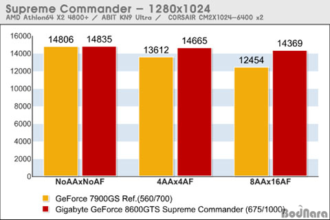 ¸ÖƼÄھ ÃÖÀûÈ­µÈ Àü·«½Ã¹Ä·¹ÀÌ¼Ç °ÔÀÓÀÎ ½´ÇÁ¸² Ä¿¸Ç´õÀÇ Å×½ºÆ® °á°ú¸¦ »ìÆìº¸¸é NoAAxNoAFÀÏ ¶§¿¡´Â µÎÁ¦Ç°ÀÌ °ÅÀÇ µ¿ÀÏÇÑ ¼º´ÉÀ» º¸¿©ÁÖ°í ÀÖÁö¸¸ ÇÊÅ͸µÀ» Àû¿ëÇÏ°Ô µÇ¸é GeForce 7900GS´Â ´«¿¡ ¶ç´Â ¼º´ÉÇ϶ôÀ» º¸¿©ÁÖ°í ÀÖ´Ù. ƯÈ÷ GeForce 7900GS¿¡¼­ ¼³Á¤°¡´ÉÇÑ ÃÖ´ë°ªÀÎ 8AAx16AF¸¦ ¼³Á¤ÇÏ¿´À» °æ¿ì ¾à 16%ÀÇ ¼º´É Ç϶ôÀ» º¸À̴°Ϳ¡ ºñÇØ Gigabyte GeForce 8600 GTS 256MB ½´ÇÁ¸² Ä¿¸Ç´õ´Â ¾à 5% ³»¿ÜÀÇ Ç϶ôÀ» º¸¿©ÁÖ°í ÀÖ¾î ¸ÖÆ¼ÄÚ¾îÀÇ À§·ÂÀ» »õ»ï ´À³¥¼ö ÀÖ´Ù.