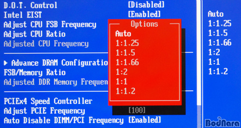 ¸Þ¸ð¸® ŸÀ̹ÖÀ» °æ¿ì AUTO À̿ܿ¡ »ç¿ëÀÚ°¡ Á÷Á¢ °¢°¢À» ¼³Á¤À» ÇÒ ¼ö ÀÖµµ·Ï µÇ¾î ÀÖÀ¸¸ç ¸Þ¸ð¸® Ŭ·°ÀÇ °æ¿ì DDR2 800/667/533 ÀÌ·± °ªÀ¸·Î °íÁ¤µÈ °ÍÀÌ ¾Æ´Ï¶ó FSB¿¡ µû¸¥ ºñÀ²·Î ¼³Á¤ÇÒ ¼ö ÀÖµµ·Ï µÇ¾î ÀÖ´Ù. ÀÌ °æ¿ì FSBÀÇ º¯È­¿¡ µû¶ó ¸Þ¸ð¸® Ŭ·°¶ÇÇÑ ¿¬µ¿µÇ¹Ç·Î ¼¼¹ÐÇÑ ¼³Á¤ÀÌ ºÒ°¡´ÉÇÏ¸ç °æ¿ì¿¡ µû¶ó ÀÚ½ÅÀÌ ¿øÇÏ´Â ¸Þ¸ð¸® Ŭ·°À» ¼³Á¤ÇÒ ¼ö ¾ø´Â ¹®Á¦µµ ¹ß»ýÇÑ´Ù.