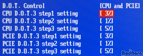 D.O.T. ControlÀº CPU ¹× PCI-Express¿¡ ´ëÇØ 3°¡Áö ½ºÅܺ°·Î ¼³Á¤ÇÒ ¼ö Àִµ¥ ¿À¹öŬ·°ÆøÀº 1%¿¡¼­ 20%±îÁö »ç¿ëÀÚ°¡ ¼³Á¤ÇÒ ¼ö ÀÖµµ·Ï µÇ¾î ÀÖ´Ù.
