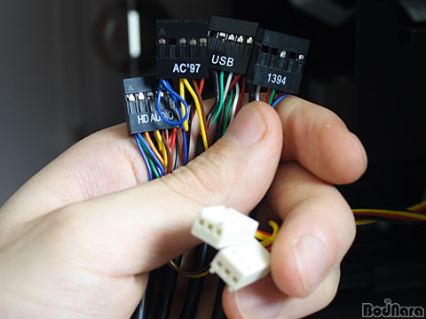 ¸ÞÀκ¸µå¿¡ ¿¬°áÇÏ¿© ¿ÜºÎ Ãâ·Â Æ÷Æ®¸¦ »ç¿ëÇÒ ¼ö ÀÖ´Â ºÎºÐÀº ¿Àµð¿À USB, IEEE1394°¡ ÀÖÀ¸¸ç, Àü¸é 2°³ 92mm Ä𸵠ÆÒÀ» µ¿ÀÛÇÏ°Ô Çϱâ À§ÇØ 3ÇÉÀÇ Ä¿³ØÅ͸¦ °¢°¢ Á¦°øÇÑ´Ù. À̵éÀº Ãß°¡·Î Á¦°øµÇ´Â ZM-MC1 ¸ÖƼ Ä¿³ØÅ͸¦ ÅëÇØ ÆÄ¿ö ¼­ÇöóÀÌ HDD¿Í ODD¿ë 4ÇÉ¿¡ ¿¬°áÇÏ¿© »ç¿ëÇÒ ¼ö ÀÖ´Ù. ZM-MC1ÀÇ ÇϾá 3ÇÉ 2°³´Â 5V·Î °ËÁ¤»öÀº 12V·Î µ¿ÀÛÇÏ¿© Àú¼ÒÀ½Àº 5V, 12V´Â ¼º´ÉÀ» À§ÇØ »ç¿ëÇÏ¸é µÈ´Ù. ¿Àµð¿À Ãâ·ÂÀº ÃÖ±ÙÀÇ Ãß¼¼ÀÎ HD Audio¿Í AC97ÀÇ 2°¡Áö Æ÷Æ®¸¦ Á¦°øÇÏ¿© »ç¿ëÇÏ´Â ¸ÞÀκ¸µå¿¡ ¸ÂÃß¾î »ç¿ëÇÏ¸é µÈ´Ù.