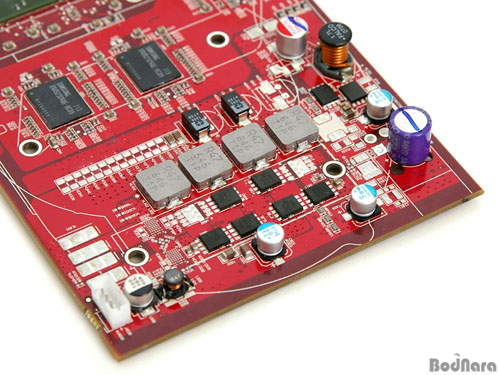 µÞ¸ð½ÀÀ» º¸¸é ±×·¡ÇÈ Ä«µå Ä𷯸¦ °íÁ¤Çϱâ À§ÇÑ ÁöÁö´ë°¡ º¸À̴µ¥, ÁöÁö´ë¿¡ »ç¿ëµÇ´Â 4°³ÀÇ °íÁ¤ ³ª»ç ¿Ü¿¡ ±×·¡ÇÈ Ä«µå Àüü¿¡ 6°³ÀÇ ³ª»ç°¡ ´õ µé¾î°£´Ù. µÞ¸é Áß¾Ó¿¡ ±×·¡ÇÈ Ä«µå°¡ HDCP¸¦ Áö¿øÇÑ´Ù´Â °ÍÀ» ¾Ë·ÁÁÖ´Â HDCP ½ºÆ¼Ä¿°¡ ºÙ¾îÀÖ´Ù. 256MB ¹öÀüÀÌ ¾Æ´Ï¶ó 512MB Á¦Ç°¿¡¼­´Â µÞ¸é¿¡µµ ¾Õ¸é°ú °°Àº 4°³ÀÇ 512Mb GDDR4 ¸Þ¸ð¸®Ä¨ÀÌ ºÙ°Ô µÈ´Ù.
