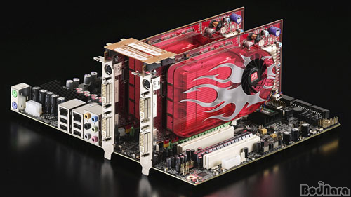 Radeon HD 2600 XT´Â 2°³ÀÇ CrossFire ºê¸´Áö¸¦ ¿¬°áÇÏ¿© ¸ÖƼ GPU¸¦ ±¸¼ºÇÒ ¼ö ÀÖ´Ù. (»çÁøÃâó : AMD ȨÆäÀÌÁö)