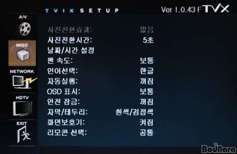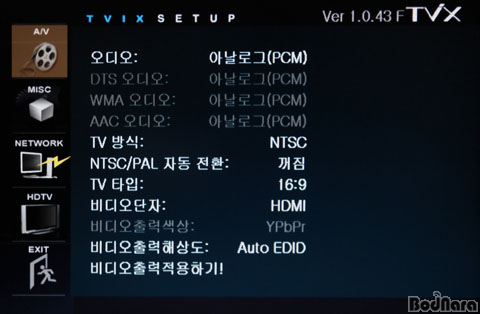 ¼³Á¤ ȸé¶ÇÇÑ ±âÁ¸ M-5000U¿Í °ÅÀÇ À¯»çÇÑ °ÍÀ» È®ÀÎÇÒ ¼ö ÀÖ´Ù. ¿ì¼± Å©°Ô A/V, MISC, NETWORK, HDTVµîÀÇ ³×°¡Áö Ç׸ñÀ» Á¦°øÇϰí Àִµ¥ HDTV Ç׸ñÀº º°µµ·Î ÆÇ¸ÅµÇ´Â HD Æ©³Ê¸¦ ÀåÂøÇÒ °æ¿ì¿¡¸¸ ¸Þ´º°¡ Ȱ¼ºÈ µÈ´Ù. ¿Àµð¿À °ü·Ã ¸Þ´º´Â ÀϹÝÀûÀÎ ¾Æ³¯·Î±× ½ºÅ×·¹¿À»Ó¸¸ ¾Æ´Ï¶ó µÞ¸éÀÇ ÄÚ¿¢½Ã¾ó/¿ÉƼÄà ´ÜÀÚ¸¦ ÅëÇØ S/PDIF Ãâ·Â±îÁö Áö¿øÇÏ¸ç °¢°¢ÀÇ ¿Àµð¿À Æ÷¸Ë¿¡ µû¸¥ Ãâ·Â ¼³Á¤À» ÇØÁÙ ¼ö ÀÖ´Ù.
