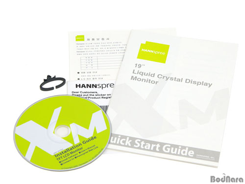 HANNS º¸½ºÅæ°ú ´º¿å ¸ð´ÏÅÍ ¸ðµÎ »ç¿ëÀÚ ¸Å´º¾ó°ú ǰÁú º¸Áõ¼­, ÀνºÅç °¡À̵å CD, D-SUB ÄÉÀ̺í, ½ºÅ×·¹¿À ¿Àµð¿À ÄÉÀ̺í, ±×¸®°í Àü¿ø ÄÉÀ̺íÀ» Á¦°øÇÑ´Ù. ´Ù¸¸ HDMI ¿Í HDMI¸¦ ÅëÇÑ DVI ÀÔ·ÂÀ» Áö¿øÇϰí ÀÖÀ½¿¡µµ À̸¦ »ç¿ëÇÒ ¼ö ÀÖ´Â ÄÉÀ̺íÀ» ±âº» Á¦°øÇÏÁö ¾Ê´Â´Ù´Â Á¡Àº ´ÜÁ¡À¸·Î ²ÅÀ» ¼ö ÀÖ´Ù.