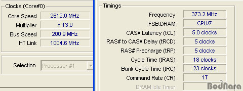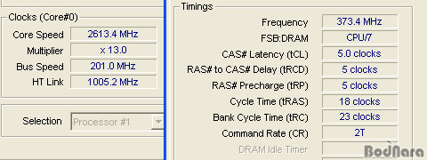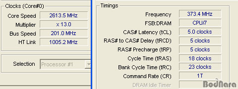 GIGABYTE GA-M57SLI-S4·Î 2613.5 (201.0 x 13)MHz¿Í 373.4MHz·Î °¡Àå ³ôÀº Ŭ·°ÀÌ