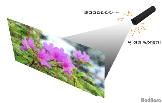 µÞÂÊ¿¡¼ RGB ÀüÀÚÃÑÀ¸·Î ºöÀ» ½î¾Æ ȸ鿡 ºÙ¾îÀÖ´Â ¹ß±¤¼ÒÀÚ¸¦ ¶§·Á¼ ºûÀ» ³»´Â ¹æ½ÄÀ̾ú´Âµ¥, TVÀÇ À¯È¿ ÇØ»óµµ 640x480Àº ȸ鿡 ÀÖ´Â
