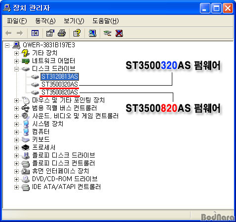 ÇÑ ÂÊÀº ST3500320AS·Î, ´Ù¸¥ ÇÑ ÂÊÀº ST3500820AS·Î ³ªÅ¸³­´Ù