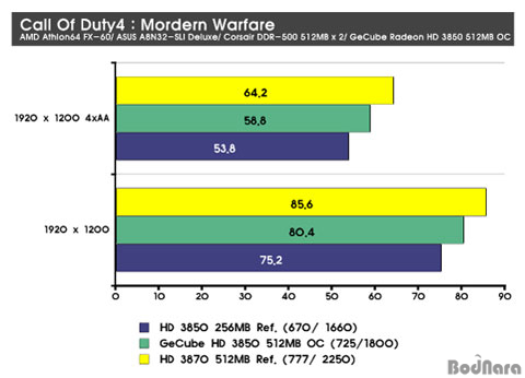 ¾Õ¼­´Â 3DMark¸¦ ÅëÇÑ ±×·¡ÇÈ Ä«µåÀÇ ±âº» ¼º´ÉÀ» È®ÀÎÇÏ¿© º¸¾Ò´Âµ¥ À̹ø¿¡´Â ½ÇÁ¦ °ÔÀÓÀ» ÅëÇØ ³ô¾ÆÁø Ŭ·°°ú ¸Þ¸ð¸® ¿ë·®ÀÌ ¾î¶² ¸ð½ÀÀ» º¸¿©ÁÖ°í ÀÖ´ÂÁö¸¦ »ìÆìº¸µµ·Ï ÇÏÀÚ. Å×½ºÆ®¸¦ ÁøÇàÇÑ Call Of Duty4 :Modern Warfare, Half Life2 : Episode2, Medal Of Honor : Air BorneÀÇ 3°¡Áö °ÔÀÓµéÀº Fraps¸¦ ÅëÇØ ÃøÁ¤µÈ Æò±Õ°ªÀ» ÀÌ¿ëÇÏ¿© ¼º´ÉÀ» ºñ±³ÇÏ¿´´Ù.