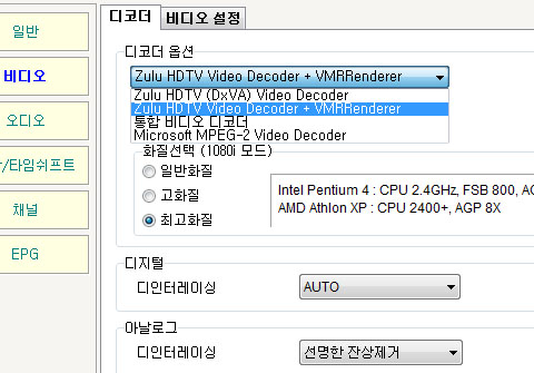 ºñµð¿À Ç׸ñÀº ¿µ»ó Àç»ý°ú °ü·ÃÇØ µðÄÚ´õ¸¦ ¼±ÅÃÇϰųª µðÀÎÅÍ·¹ÀÌ½Ì ¼³Á¤µîÀ» ÇØÁÙ ¼ö ÀÖÀ¸¸ç À̹ۿ¡ ¿µ»óÀÇ ¹à±â³ª ¸í¾Ï, »ö»óµîÀ» Á¶ÀýÇϰųª È­¸é ºñÀ² ¼³Á¤µîÀÇ ÀÛ¾÷À» ÇÒ ¼ö ÀÖ´Ù. ¼±ÅÃÇÒ ¼ö ÀÖ´Â µðÄÚ´õ·Î Ç׸ñÀº À§¿¡¼­ º¸´Â °Í°ú °°À¸¸ç Çϵå¿þ¾î ¹× ¼ÒÇÁÆ®¿þ¾î °¡¼ÓÀ» ¸ðµÎ Áö¿øÇϰí Àֱ⠶§¹®¿¡ ÀÚ½ÅÀÇ ±×·¡ÇÈÄ«µåµîÀÇ ½Ã½ºÅÛ È¯°æ¿¡ ¸ÂÃç ÀûÀýÈ÷ ¼±ÅÃÀ» ÇØÁÖ¸é µÈ´Ù.