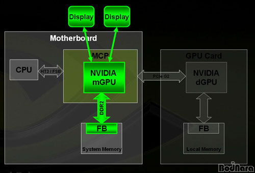 »ç¿ì½ººê¸´ÁöÀÎ nForce 200 ¿¡¼ ´ã´çÇϰí, GeForce 8200ÀÇ °æ¿ì ¿øÄ¨(One Chip) ¼Ö·ç¼ÇÀ̱⠶§¹®¿¡ ÇϳªÀÇ Ä¨¼Â¿¡¼