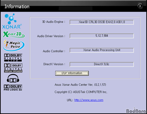3D ¿Àµð¿À ¿£ÁøÀº Xear3D ¿Ü¿¡ DirectSound 3D, EAX 2.0, A3D 1.0 ±â¼úÀ» Áö¿øÇÑ´Ù. ¶ÇÇÑ ³»Àå »ç¿îµå Ä«µåÀÎ Xonar D2¿¡ µé¾î°¬¾ú´ø ASUS °íÀ¯ÀÇ DS3D GX 1.0À» Áö¿øÇϹǷΠÀ©µµ¿ì ºñ½ºÅ¸¿¡¼­ EAX ¹× Direct Sound 3D Çϵå¿þ¾î °¡¼Ó ±â´ÉÀ» »ç¿ëÇÒ ¼ö ÀÖ´Ù°í ÇÑ´Ù.