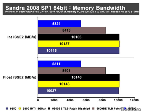 Å×½ºÆ® °á°ú´Â ¾Õ¼ÀÇ Sandra 2008ÀÇ ¸Þ¸ð¸® ´ë¿ªÆø ºÎºÐ¿¡¼ TLB ÆÐÄ¡¸¦ Àû¿ëÇÏ¿´À» ¶§ ´ë¿ªÆøÀÌ °¨¼ÒµÇ¾ú´Âµ¥
