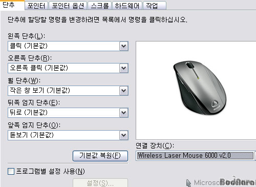 ƯÈ÷, ¸¶ÀÌÅ©·Î¼ÒÇÁÆ® ¹«¼± ·¹ÀÌÀú 6000 v2.0 Àº ÈÙ ¹öư°ú ´ÙÀ½ÆäÀÌÁö ¹öưÀ¸·Î À©µµ ºñ½ºÅ¸¿¡¼­ ½±°Ô Ȱ¿ëÇÒ ¼ö ÀÖ´Â Filp 3D ±â´É°ú µ¸º¸±â ±â´ÉÀ» Á¦°øÇÑ´Ù. Filp 3D ±â´ÉÀ» Áö¿øÇÏÁö ¾Ê´Â XP ¿î¿µÃ¼Á¦ÀÇ °æ¿ì À§ »çÁø°ú °°Àº ¹æ½ÄÀ¸·Î ¹è¿­µÇ¾î â ÀüȯÀ» ÇÒ ¼ö ÀÖÀ¸¸ç, µ¸º¸±â ¹öưÀ» ´©¸£°í ÀÖÀ¸¸é, µ¸º¸±âÀÇ ¿µ¿ª°ú È®´ë ¼öÁØÀ» Á¶ÀýÇÒ ¼öµµ ÀÖ´Ù.