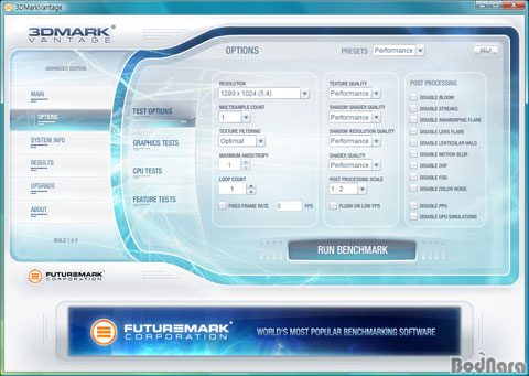 [3DMark Vantage ÁÂÃø ¸Þ´º Options]