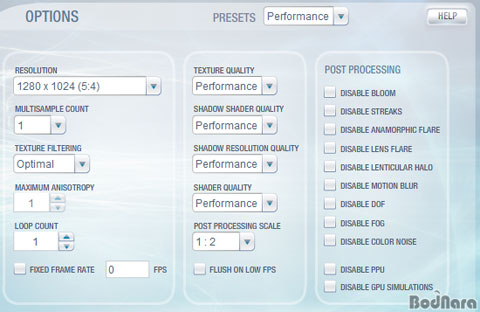 Performance, High, ExtremeÀÇ 4°¡Áö¸¦ ¼±ÅÃÇÒ ¼ö ÀÖ´Ù. ÀÌ Áß Peformance´Â ±âº» °ªÀ¸·Î