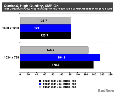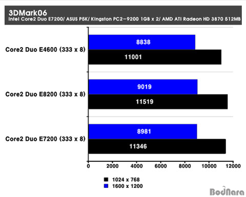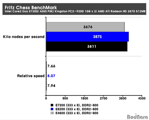 E7200Àº E8200°ú Å« Â÷ÀÌ´Â ¹ß»ýµÇÁö ¾Ê¾ÒÀ¸¸ç, E4600°ú´Â CPUÀÇ ¿µÇâÀ» ¹Þ´Â ÀúÇØ»óµµ¿¡¼ ±× Â÷À̰¡ ´õ Å©°Ô