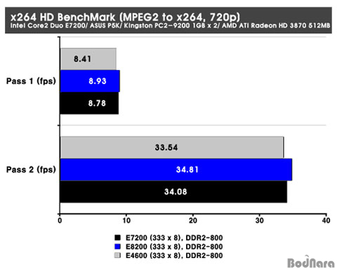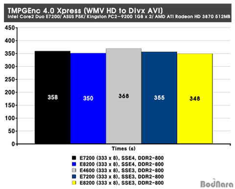 Divx 6.8.0 ÄÚµ¦À» »ç¿ëÇÏ¿© Æ÷¸ËÀ» º¯È¯ÇÏ´Â ½Ã°£À» ¼·Î ºñ±³ÇÏ¿´´Ù. Å×½ºÆ® °á°ú E7200Àº E8200°ú L2