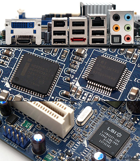 ÀÌ´õ³Ý ±¸¼ºÀÌ °¡´ÉÇѵ¥ ¿©±â¿¡´Â PCIe ±â¹ÝÀÇ Intel 82567LF¸¦ »ç¿ëÇÏ¿´À¸¸ç, 7.1ä³Î ¿Àµð¿À¿¡´Â IDTÀÇ 92HD73E,