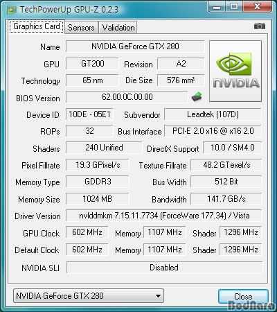 ROP, GT200 GPU°¡ ÀνĵȴÙ. Leadtek WinFast GTX 280 1GB´Â ·¹ÆÛ·±½º¿Í µ¿ÀÏÇÑ ÄÚ¾î 602/