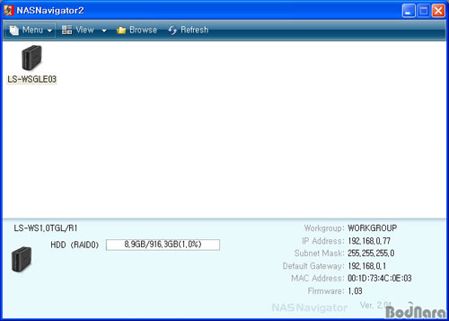 ³×Æ®¿öÅ©·Î ¿¬°áµÈ NAS ÀåÄ¡¸¦ ã¾Æ¼ º¸¿©Áִµ¥, ÀúÀå °ø°£À» Ç¥½ÃÇØÁÖ´Â °Í ¿Ü¿¡ IP ÁÖ¼Ò¿Í Æß¿þ¾î ¹öÀü µîÀ» Ç¥½ÃÇϸç ÇÁ·Î±×·¥¿¡¼ ¹Ù·Î