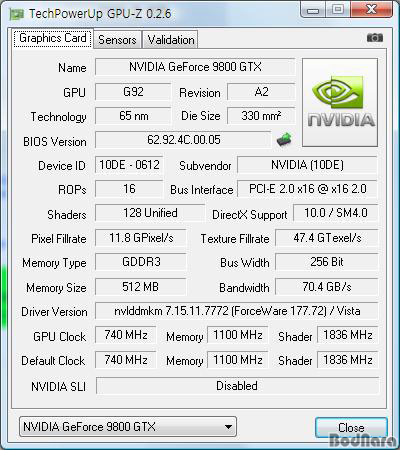 GPU-Z¿¡´Â ¾ÆÁ÷ 55nm °øÁ¤ÀÇ ÁöÆ÷½º 9800 GTX
