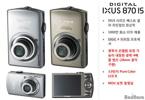 Àͼ½º870 IS´Â ÀÌÀü ¸ðµ¨ÀÎ Àͼ½º860 IS¿Í ¸¶Âù°¡Áö·Î ±¤°¢ 28mm ¼º´ÉÀ» À¯ÁöÇϸ鼵µ ±¤ÇÐ ÁÜ 4¹è, ¼¼ÀÌÇÁƼ ÁÜ 9.1¹è·Î ÀÌÀü º¸´Ù ÈξÀ °ÈµÈ Áܱâ´ÉÀ» žÀçÇϰí ÀÖ´Ù. 1000¸¸ È¼Ò CCD¿Í ij³íÀÇ 4¼¼´ë ¿µ»óó¸® ¿£ÁøÀÎ DiGiC 4¸¦ žÀçÇϰí ÀÖÀ¸¸ç, Á¢»ç ÃÔ¿µ°Å¸®µµ 2¼¾Æ¼¹ÌÅÍ·Î ¿¹Àü ¸ðµ¨(3¼¾Æ¼¹ÌÅÍ)º¸´Ù ª¾ÆÁ³´Ù.  ÁøÈµÈ ¾ó±¼Àνıâ´É, µ¿ÀÛÀνıâ´É, ³ëÀÌÁî °¨¼Ò ±â¼ú µîÀ» Á¢¸ñÇØ Àι° ¹× dz°æÃÔ¿µ¿¡¼ º¸´Ù ¼±¸íÇÏ°í ½Ã¿øÇÑ È°¢ÀÇ À̹ÌÁö ÃÔ¿µÀÌ °¡´ÉÇØÁ³´Ù. 3.0ÀÎÄ¡ Ç»¾î Ä®¶ó LCD II ¾×Á¤¸ð´ÏÅͷΠȰ¢ÀÌ ³ÐÀº ±¸µµ¿¡¼µµ ¼±¸íÇÏ°Ô ÇÇ»çü¸¦ È®ÀÎÇϰí ÃÔ¿µ Àç»ýÇÒ ¼ö ÀÖ´Ù.  Àͼ½º 870 IS´Â 3Áß ÇÁ¸®¹Ì¾ö ÄÚÆÃÀ¸·Î »ö»ó°ú Ã˰¨ÀÌ ºÎµå·´°í ±¤ÅÃÀÌ ¾Æ¸§´Ù¿ì¸ç, ½ºÅ©·¡Ä¡¿¡ °ÇØÁ³´Ù. »ö»óÀº ±Ý»ö, Àº»ö µÎ °¡Áö.  Àͼ½º 870 IS´Â ¿À´Â 9¿ù ÇϼøºÎÅÍ ±¹³»ÆÇ¸Å¸¦ ½ÃÀÛÇÒ ¿¹Á¤À̸ç, °¡°ÝÀº 30¸¸¿ø ´ë ÈÄ¹Ý ¿¹Á¤.   |