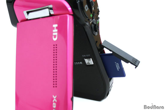 HD800Àº ÃÔ¿µµÈ µ¿¿µ»óÀ̳ª »çÁøÀÇ ÀúÀå ¸Åü·Î SD ¸Þ¸ð¸®Ä«µå¸¦ »ç¿ëÇÑ´Ù. SD ¸Þ¸ð¸® Ä«µå´Â Èĸé Á¶ÀÛ ¹öư Çϴܺο¡ ÀåÂøµÇ¸ç, ÃÖ´ë 32GB ¿ë·®ÀÇ SDHC ¸Þ¸ð¸®¸¦ Áö¿øÇÑ´Ù. »ê¿ä´Â 8GB SD ¸Þ¸ð¸®Ä«µå »ç¿ë½Ã 1280x720 ÇØ»óµµÀÇ HD-SHQ ¸ðµå µ¿¿µ»ó ÃÔ¿µ½Ã ÃÖ´ë 1½Ã°£ 55ºÐ±îÁö ±â·ÏÇÒ ¼ö ÀÖÀ¸¸ç, 4000x3000 ÇØ»óµµÀÇ 12M ¸ðµå »çÁø ÃÔ¿µ½Ã ÃÖ´ë 2020¸Å±îÁö ±â·Ï °¡´ÉÇÏ´Ù°í ¹àÇû´Ù. ¹èÅ͸® »ç¿ë ½Ã°£ÀÌ ÇÑÁ¤ÀûÀ̱⠶§¹®¿¡ SD ¸Þ¸ð¸®Ä«µå ¿ë·®Àº ¹èÅ͸®¸¦ °í·ÁÇÏ¿© ¼±ÅÃÇÏ´Â °ÍÀÌ ¹Ù¶÷Á÷ÇÏ´Ù.