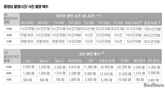 ¡ã SD ¸Þ¸ð¸® Ä«µå ¿ë·®º° µ¿¿µ»ó ÃÔ¿µ½Ã°£ ¹× »çÁøÃÔ¿µ ¸Å¼ö