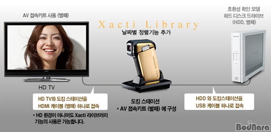 Çϴܺο¡´Â µµÅ·½ºÅ×À̼ǰú Á¢¼Ó ¾î´ðÅ͸¦ ¿¬°áÇϱâ À§ÇÑ ´ÜÀÚ°¡ ¸¶·ÃµÇ¾î ÀÖ´Ù. USB ¿¬°á°ú Àü¿ø ¾î´ðÅÍ ¿¬°áÀÌ °¡´ÉÇÑ Á¢¼Ó ¾î´ðÅÍ´Â ±âº» Á¦°øµÇ¸ç, µµÅ·½ºÅ×À̼ÇÀº º°µµ·Î ±¸ÀÔÇÏ¿© »ç¿ëÇÒ ¼ö ÀÖ´Ù. µµÅ·½ºÅ×À̼ÇÀ» »ç¿ëÇϸé HDMI Æ÷Æ®¸¦ ÅëÇØ ÃÔ¿µµÈ ¿µ»ó°ú »çÁøÀ» ¹Ù·Î µðÁöÅÐ µð½ºÇ÷¹ÀÌ ÀåÄ¡·Î Ãâ·ÂÀÌ °¡´ÉÇϰųª HD800°ú ȣȯµÇ´Â ¿ÜÀåÇü HDD¿¡ ´ÙÀÌ·ºÆ®·Î ¹é¾÷ÇÒ ¼ö ÀÖ´Ù.