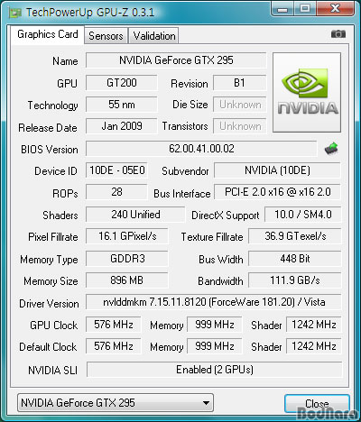 [GeForce GTX 295, GPU-Z 0.3.1 Á¤º¸]