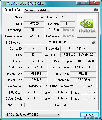 [GeForce GTX 285, GPU-Z 0.3.1 Á¤º¸]