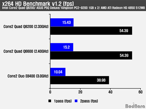 x264 HD Benchmark´Â 1/ 2passÀÇ 2ȸ Å×½ºÆ®°¡ ÀÌ·ç¾îÁö¸ç, ÀÌ º¥Ä¡¸¶Å© ÇÁ·Î±×·¥Àº ¸ÖƼ Äھ Áö¿øÇϱ⠶§¹®¿¡ µà¾ó Äھ´Ù´Â Äõµå ÄÚ¾î ÇÁ·Î¼¼¼ÀÇ Ã³¸® ¼º´ÉÀÌ ¿ì¼öÇÏ°Ô ³ªÅ¸³´Ù.