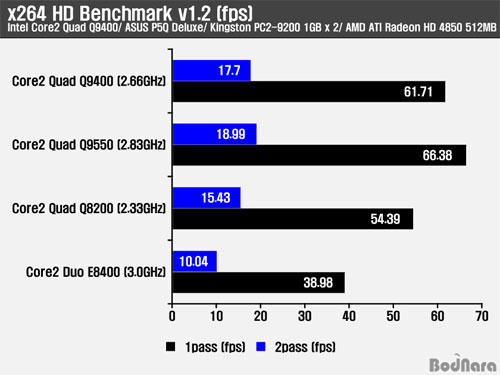 x264 HD Benchmark´Â 1/ 2passÀÇ 2ȸ Å×½ºÆ®°¡ ÀÌ·ç¾îÁö¸ç, ÀÌ º¥Ä¡¸¶Å© ÇÁ·Î±×·¥Àº ¸ÖƼÄھ Áö¿øÇϱ⠶§¹®¿¡ µà¾óÄھ´Ù´Â ÄõµåÄÚ¾î ÇÁ·Î¼¼¼ÀÇ Ã³¸® ¼º´ÉÀÌ ¿ì¼öÇÏ°Ô ³ªÅ¸³´Ù.