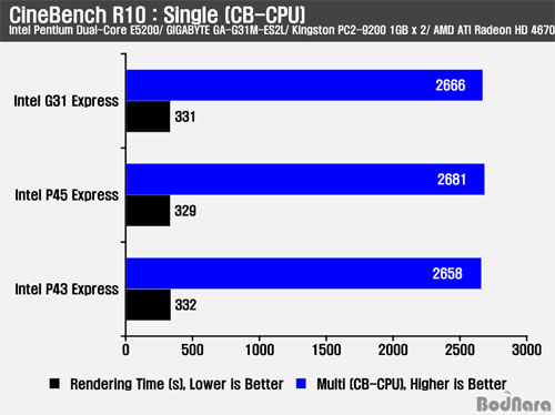 CPU ¿¬»ê°ú ¾ÐÃà, ·»´õ¸µ, ÀÎÄÚµù °¢ ºÐ¾ßÀÇ ¼º´ÉÀ» µ¿ÀÏÇÑ CPU¿Í ¸Þ¸ð¸®ÀÇ ½Ã½ºÅÛ ±¸¼º¿¡ Ĩ¼Â¸¸ G31/ P43/ P45ÀÇ 3Á¾À¸·Î ³ª´©¾î Å×½ºÆ®¸¦ ÁøÇàÇߴµ¥ ¾Õ¼ ¾ð±ÞÇß´ø °Íó·³ Áö¿ø ±â´É µîÀÇ Â÷À̸¦ Á¦¿ÜÇÏ°í ½ÇÁ¦ CPU ¿¬»êºÎºÐÀÇ ¼º´ÉÀº 3Á¾ Ĩ¼Â ¾î¶² °ÍÀ» »ç¿ëÇÏ´õ¶óµµ Á¤µµÀÇ Â÷ÀÌ´Â ÀÖÁö¸¸, ±× Â÷ÀÌ´Â Å©Áö ¾Ê°Ô ³ªÅ¸³µ´Ù.