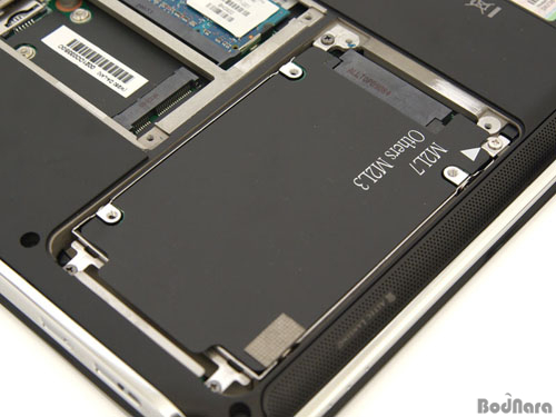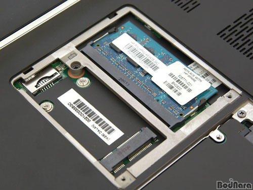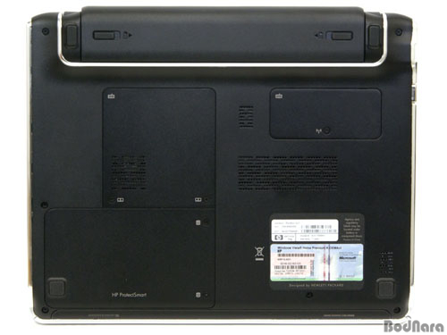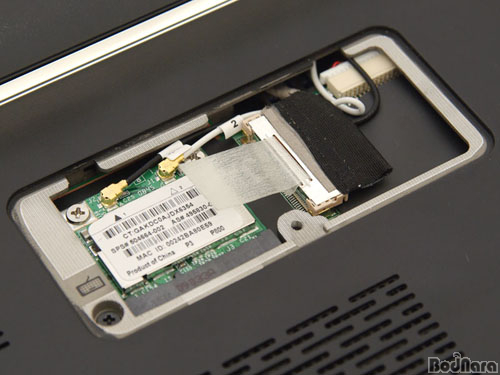 ¸ÇÀ§¿¡ º¸ÀÌ´Â 6¼¿ ¹èÅ͸® ÀåÂøºÎ ¾Æ·¡·Î ¿ìÃø¿¡´Â ¹«¼± ·£(WLAN) ¸ðµâÀ» ÀåÂøÇϱâ À§ÇÑ Ä¿¹ö°¡ º¸À̰í, ÁÂÃø¿¡´Â ¹«¼± ±¤´ë¿ª ³×Æ®¿öÅ©(WWAN) ¸ðµâ ¹× Mini PCI ½½·Ô, ¸Þ¸ð¸® ½½·ÔÀÌ µé¾î°¬´Ù. ÁÂÃø ÇÏ´Ü¿¡´Â 2.5ÀÎÄ¡ SATA HDD°¡ µé¾î°¡Àִµ¥, ÇÏµå ¾÷±×·¹ÀÌµå ¿ª½Ã ½±°Ô ÇÒ ¼ö ÀÖ´Ù.