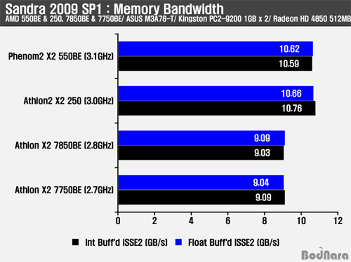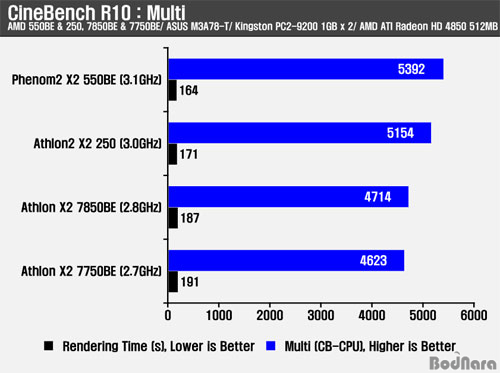 | VGA Driver | AMD ATI Catalyst 9.5 |  Å×½ºÆ® ½Ã½ºÅÛÀº AMDÀÇ 10¸¸¿ø ÀÌÇÏÀÇ º¸±ÞÇü CPU 2Á¾°ú »õ·Ó°Ô µîÀåÇÑ 10¸¸¿ø ÃʹÝÀÇ ¸ÞÀνºÆ®¸² ¹× º¸±ÞÇü CPU 4Á¾ÀÇ ¼º´ÉÀ» ºñ±³ÇßÀ¸¸ç, ¸Þ¸ð¸®´Â DDR2 1066MHzÀÇ Å¬·°°ú ±âº» ¸Þ¸ð¸® ŸÀ̹ÖÀº CL5-5-5-18-2T·Î ¼³Á¤Çß´Ù. ±×·¡ÇÈ Ä«µå´Â AMD ATI Radeon HD 4850 ·¹ÆÛ·±½º, HDD´Â SeagateÀÇ ¹Ù¶óÄí´Ù 7200.12 SATA2 Áö¿ø 1TB, ¿î¿µÃ¼Á¦´Â À©µµ¿ì ºñ½ºÅ¸ ¾óƼ¹Ô K SP1 32bit ¿î¿µÃ¼Á¦¿¡¼ ÁøÇàÇß´Ù. À̹ø Å×½ºÆ®¸¦ ÅëÇØ °øÁ¤ °³¼±°ú Ŭ·°ÀÌ Çâ»óµÇ¾î ¿©·¯ ºÎºÐ¿¡¼ Çâ»óµÈ °ÍÀ¸·Î ¾Ë·ÁÁø Æä³Ñ2 X2 550BE¿Í Athlon2 X2 250ÀÇ ¼º´ÉÀÌ 10¸¸¿ø ÀÌÇÏÀÇ º¸±ÞÇü CPU 2Á¾°ú ºñ±³ÇÏ¿© ¾î´À Á¤µµÀÇ Â÷À̸¦ º¸ÀÌ´ÂÁö »ìÆìº¸¾Ò´Ù.       CPU ±âº» ¿¬»ê ¼º´É