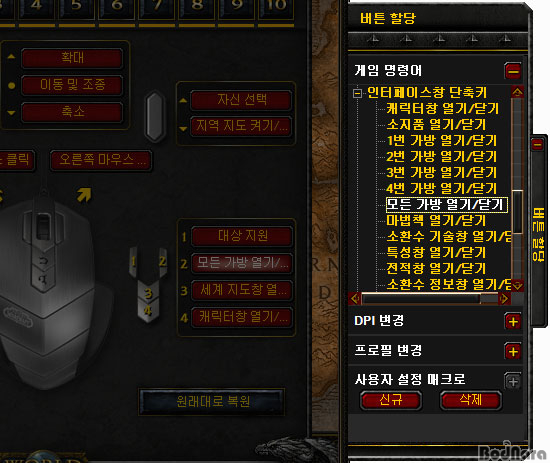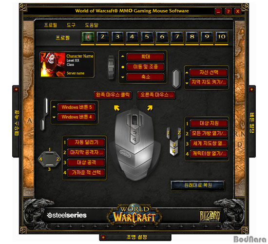 ¿À¸¥ÂÊ¿¡ ÀÖ´Â ¹öư ÇÒ´ç ¸Þ´º´Â WOW MMO ¸¶¿ì½ºÀÇ °¢ ¹öư¿¡ ÇÒ´çÇÒ ¼ö ÀÖ´Â ±â´ÉµéÀ» ¸ð¾Æ³õÀº °ÍÀ¸·Î, º¸Åë À©µµ¿ì ³»ÀÇ Æ¯Á¤ ±â´ÉÀ̳ª ÀÀ¿ë ÇÁ·Î±×·¥ ¹Ù·Î °¡±â¸¦ Áö¿øÇÏ´Â ÀÏ¹Ý ¸¶¿ì½º¿Í ´Þ¸® öÀúÇÏ°Ô WOW °ÔÀÓ ³» ±â´É ±¸Çö¿¡¸¸ ÃÊÁ¡À» ¸ÂÃè´Ù.