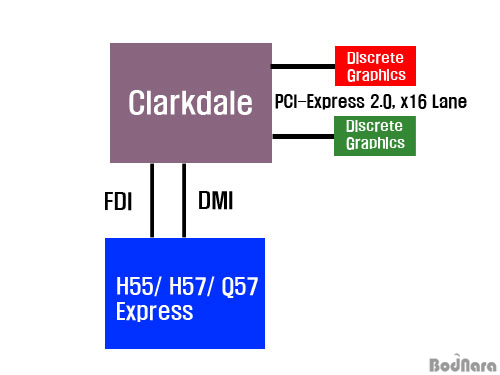 P55/ P57Àº ¸°Çʵå¿Í Ŭ¶ôµ¥ÀÏ (45nm Çìºìµ¥ÀÏÀº Ãë¼Ò, 32nm Ŭ¶ôµ¥ÀÏ·Î ±³Ã¼)À» ±âº»ÀûÀ¸·Î Áö¿øÇϸç, ³»Àå ±×·¡ÇÈ Äھ ³»ÀåµÈ Ŭ¶ôµ¥ÀÏÀ» Á¦´ë·Î »ç¿ëÇϱâ À§Çؼ­´Â FDI¸¦ ³»ÀåÇÑ H55/ H57ÀÌ ÇÊ¿äÇÏ´Ù.