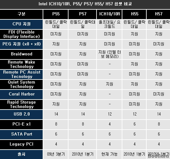 P5 ½Ã¸®Áî¿Í ±âÁ¸ ICH10/10R »ç¿ì½ººê¸´Áö¿Í ±â´É Áö¿ø ºñ±³