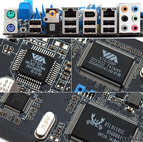 10ä³Î°ú 24bits/ 192KHz¸¦ Áö¿øÇÏ´Â VIA VT2020 HD Auio ÄÚµ¦ (DTS Surround Sensation UltraPC), IEEE1394a Áö¿øÀ» À§ÇÑ VIA VT6308P ÄÁÆ®·Ñ·¯°¡ »ç¿ëµÈ´Ù.