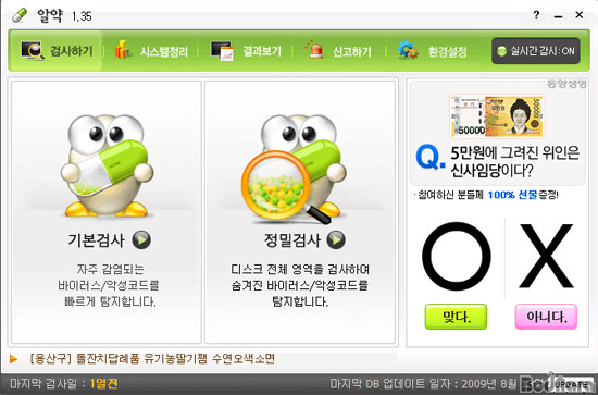 ¹ÙÀÌ·¯½º ±âº» Áø´Ü±â´É°ú PCÃÖÀûÈ ±â´ÉÀÌ Á¦°øµÇ¾îÁö¸ç PC±×¸°À» ¼³Ä¡ÇÒ °æ¿ì ³×À̹ö Åø¹Ù